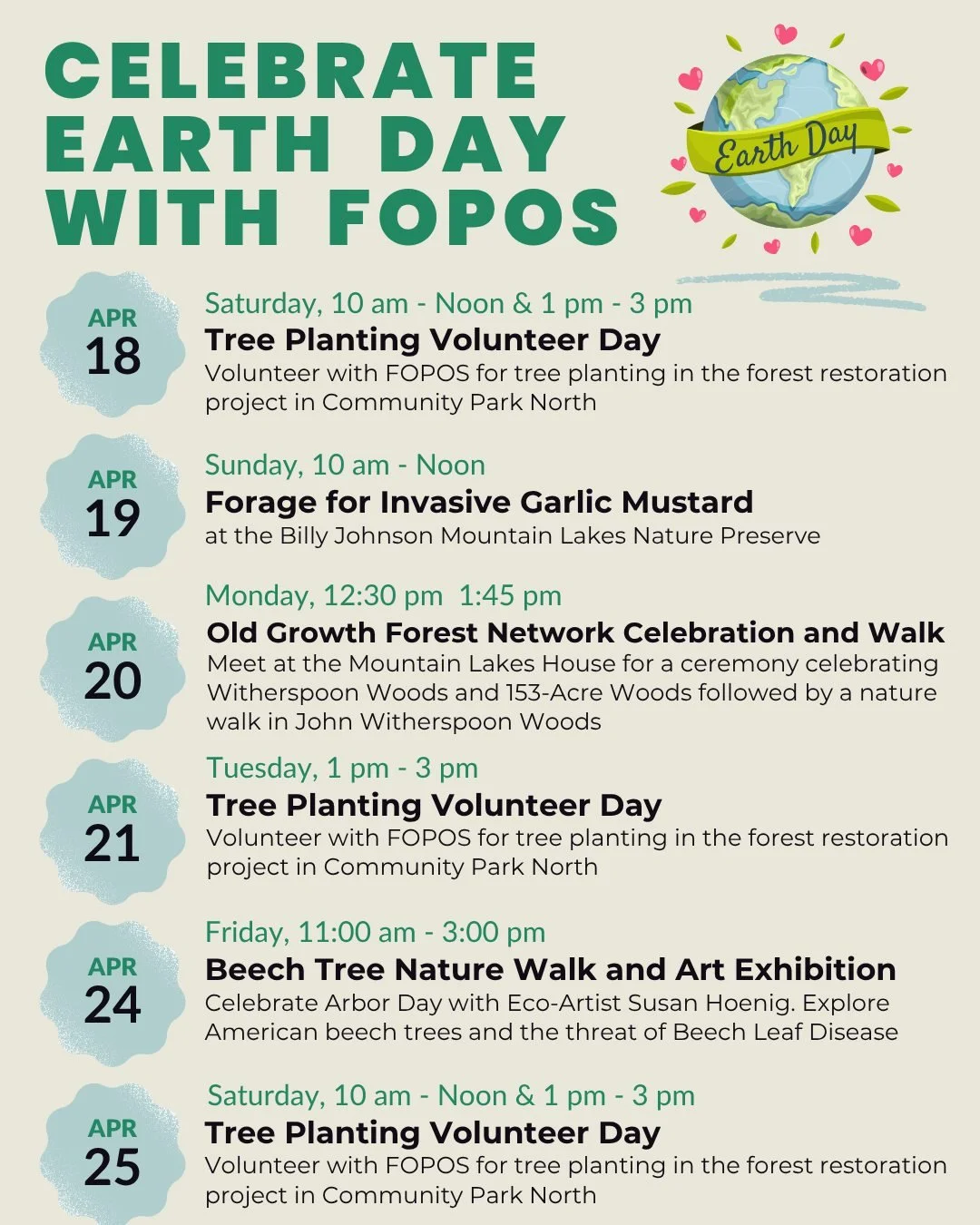 FOPOS is committed to planting over 6,500 native trees, shrubs, and wildflowers within riparian zones at the Billy Johnson Mountain Lakes Nature Preserve located in Princeton, New Jersey. A contribution of $25 for a tree sapling, $100 for an adult tree, or any other amount helps support this effort. Click HERE to learn more.